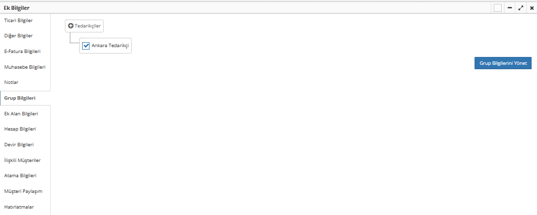Kaydetme işlemi sonrasında, seçtiğiniz grup bilgileri ilgili cari karta eklenmiş olacaktır.