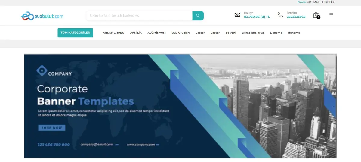 Banner Yeri; B2B portalınızın ana sayfasında yer alacak görselleri belirlediğiniz alandır. Eklediğiniz görseller aşağıdaki gibi görüntülenecektir.